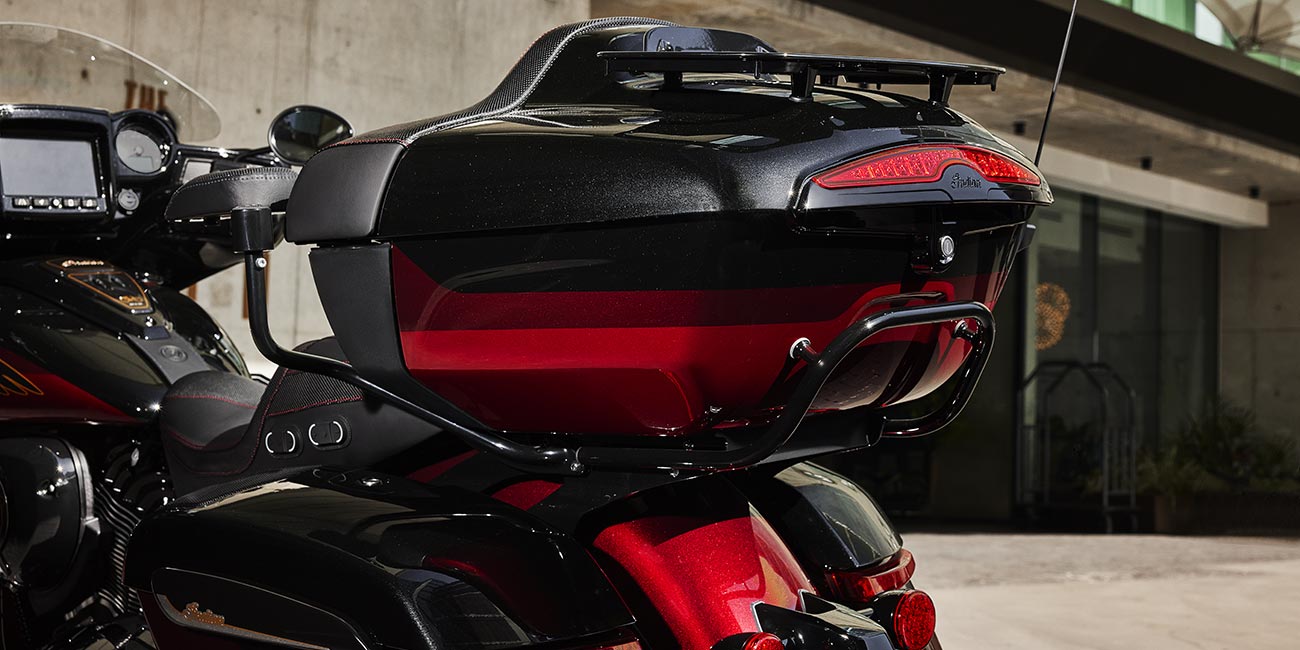RIDE COMMAND® 搭載7インチディスプレイ、パワーウインドシールド、ドライビングライト、バックライト付きスイッチキューブ、ハイウェイバー、プレミアムステッチ入りH/Cシート、ヒートグリップ、調整式パッセンジャーフロアボード、36.2ガロン収納スペース、リモートロックハードサドルバッグ&トランク、選択可能なライドモード、リアシリンダー非作動化、ABS、クルーズコントロール、キーレスイグニッション、AM/FM、Bluetooth、USB、スマートフォン対応入力、ウェザーバンド付き600ワットオーディオシステム、12V充電ポート