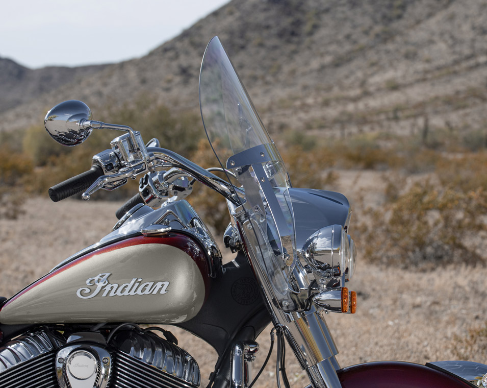 | 標準装備 | クイックリリース・ウインドシールド、リモートロック式ハードサドルバッグ、ハイウェイバー、ライドモード、ABS、クルーズコントロール、キーレスイグニッション、インディアン®スクリプトタンクバッジ、12V充電ポート |