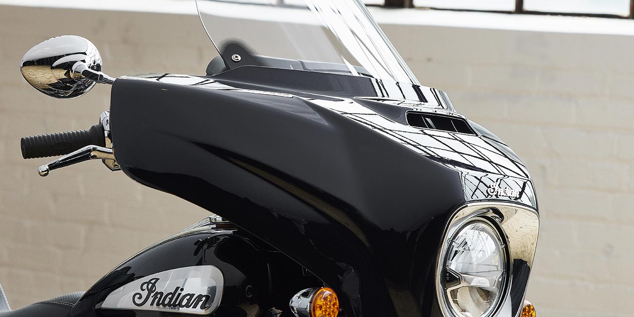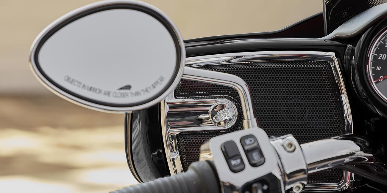 Apple CarPlay®を統合したRIDE COMMAND搭載7インチタッチスクリーン、電動フロントガラス、ドライビングライト、ハイウェイバー、合皮シート(ライダー/同乗者セパレートヒートコントロール)、グリップヒーター、アジャスタブルパッセンジャーフロアボード、36.2ガロン収納、リモコン付ハードサドルバッグ&トランク、ライディングモード選択可能、リアシリンダー停止、ABS、クルーズコントロール、キーレスイグニッション、AM/FM、Bluetooth®、USB、スマートフォン対応入力、ウェザーバンド付200Wオーディオシステム、12V充電ポート